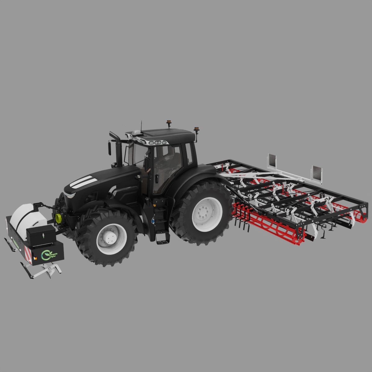Die Arbeitstiefe sowie die Einstellung der Planierschienen sind vollständig hydraulisch regelbar. Dadurch kann das Arbeitsergebnis direkt aus der Kabine an wechselnde Bodenverhältnisse angepasst werden.